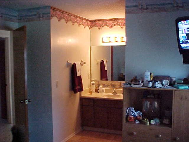 half-bath are built into the bedroom. We painted the vanity walls a