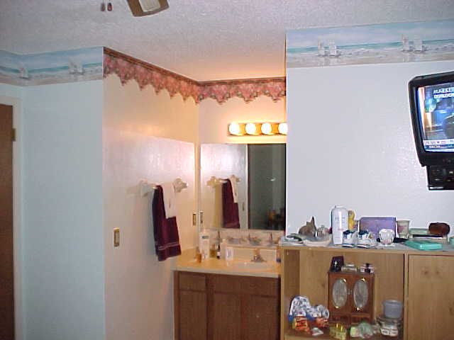 rose design and bordered the bedroom with a beach scene that reminded