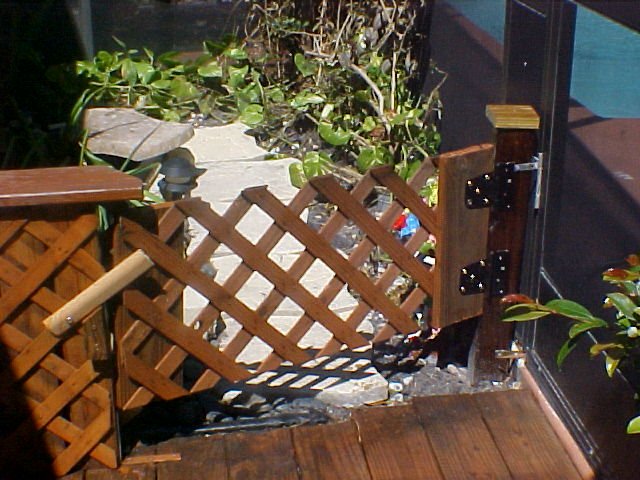 View showing new gate, Cathy's hand painted fairy and