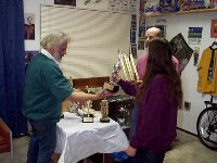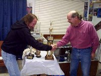 Mark awards DJ the BIG trophy while Mike congratulates DJ on his very first Championship.