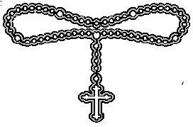 Rosary: The standard rosary, known as the mystic rose garden of the Virgin Mary is 150 beads divided into groups of 10 by 15 larger beads. Each one third or five decades is called a chaplet and recalls five of the fifteen Mysteries of the Rosary. Each Mystery is an episode from the life of Jesus and the Virgin Mary. They are: 1) The Joyful Mysteries: The Annunciation of Mary: the Visitation of the Angel Gabriel to the Virgin; the Nativity; the Presentation of Jesus at the Temple; the Finding of Jesus at the Temple (remember he was lost to his parents while talking to the Rabbis). 2) The Sorrowful Mysteries: the Agony in the Garden; the Scourging of Jesus; the Crown of thorns; the Way of the Cross; the Crucifixion. 3) The Glorious Mysteries: the Resurrection; the Ascension; the Decent of the Holy Spirit; the Assumption and Coronation of the Blessed Virgin Mary. |