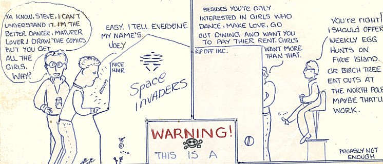 Julie was the sweetheart of the club and my object of longing and affection. In fact, had she not encouraged my attraction I would had not hung at Poor Peters long at all. Most importantly, she held my attention because she - like me - was a top notch dancer and we became steady dance partners. A romance would have blossomed but her mother was 3 years younger than I. We were a match made only under Disco lights. Julie went on to marry a down to earth and successful man named Eddie. Ed appears in the comics from time to time but avoided the night life. Last I heard they had 2 or more children and were Yuppies. |